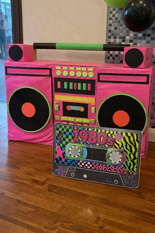 Cassette tapes, VHS tapes, and boomboxes make amazing 80s themed party decorations. Scatter them on tables, stack them into centerpieces, or use them as props in your photo area.