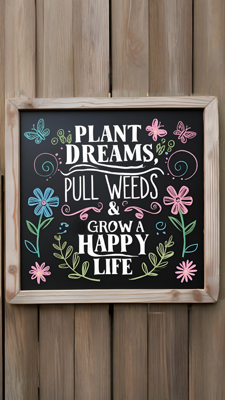 1. “Plant Dreams” Rustic Garden Chalkboard