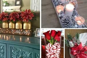 A great addition to all your Christmas decor – this centerpiece is a real show stopper. Spray paint a couple of mason jars in gold and add faux poinsettias. Set into a wooden tray and enjoy. You could also add fairy lights to add extra magic.