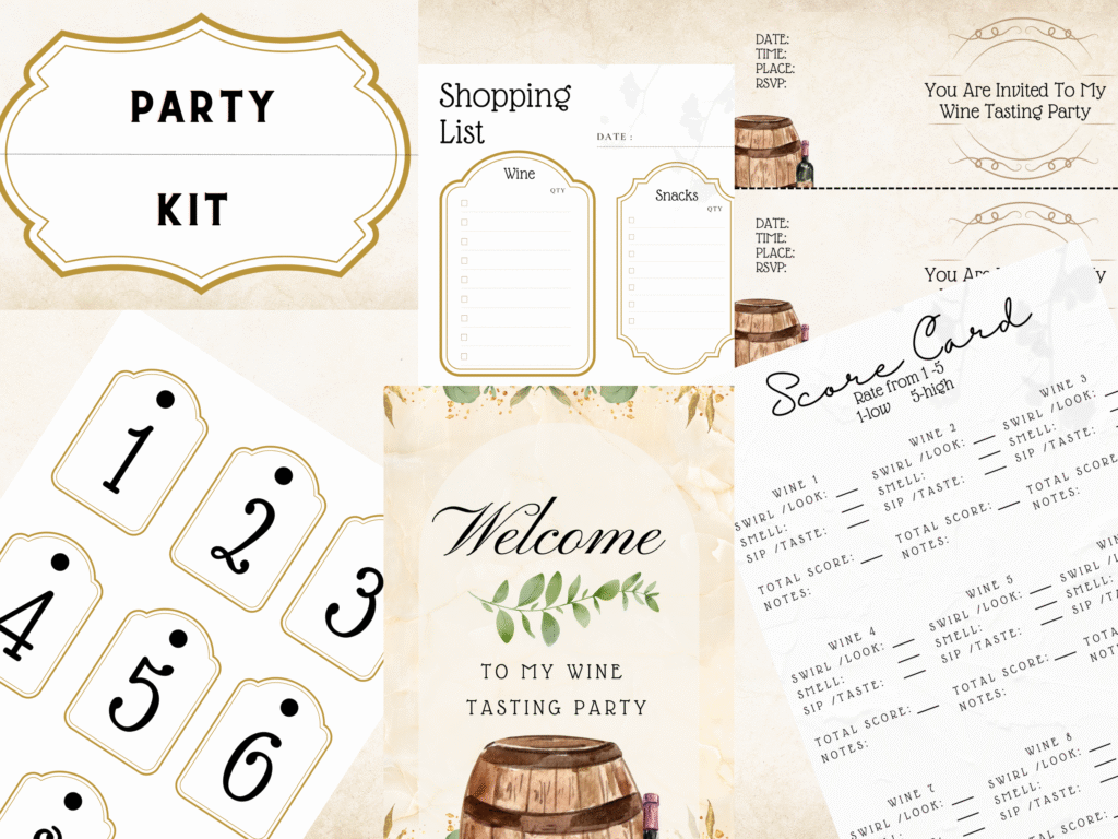 Host the ultimate wine party with this all-in-one printable kit! 🍷✨ Perfect for your next gathering, this set has everything you need to create a fun and memorable tasting experience. 🍇 PDF Kit Includes: 🪧 Party Sign ✉️ Invitations 📝 Shopping List 🏷️ Wine Labels 🍽️ Foldable Placement Tags 📊 Score Cards 🥇 Wine Results… Read More »Wine Tasting Party Printable Kit